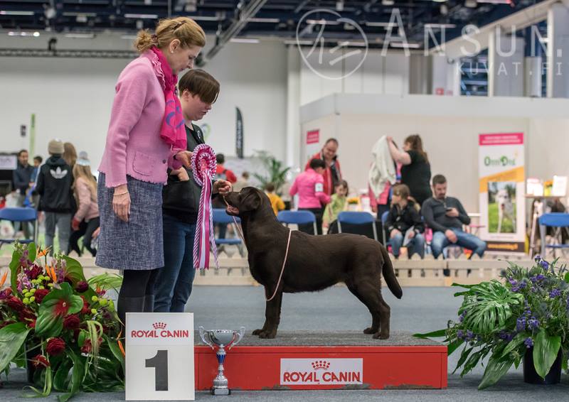 - 24.04.2017 Helsinki all-breed puppy show: BOB-Puppy, Group Winner & BEST IN SHOW PUPPY with over 400 entries! (Labradors & Group by Marja Kosonen, BIS by Annukka Paloheimo)